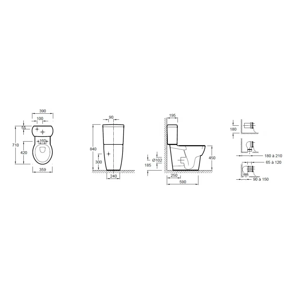 Технические характеристики Унитаз-компакт Ove 35,9х71 см, нижняя подводка, горизонтальный выпуск, без сиденья 19967W-00+E1558-00 Jacob Delafon
