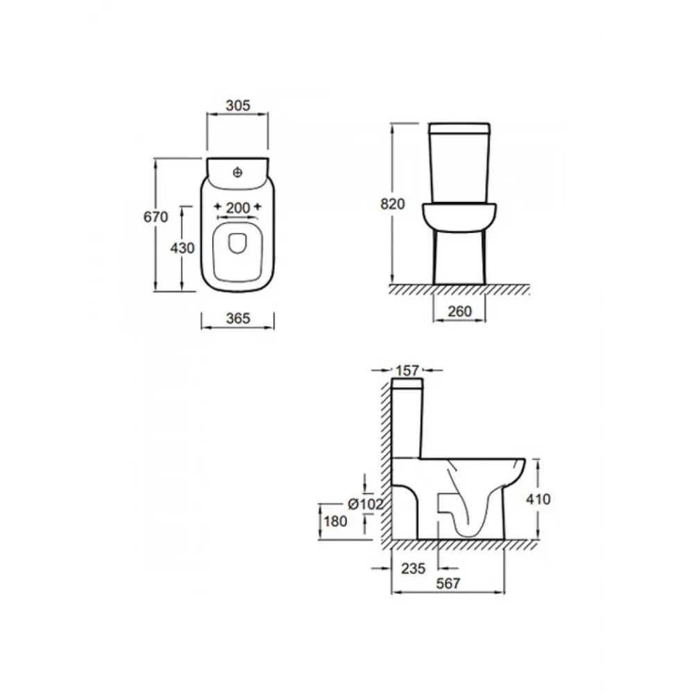Технические характеристики Унитаз-компакт Replay 36,5х67 см, нижняя подводка, горизонтальный выпуск, без сиденья 4973K-00+E4832-00 Jacob Delafon