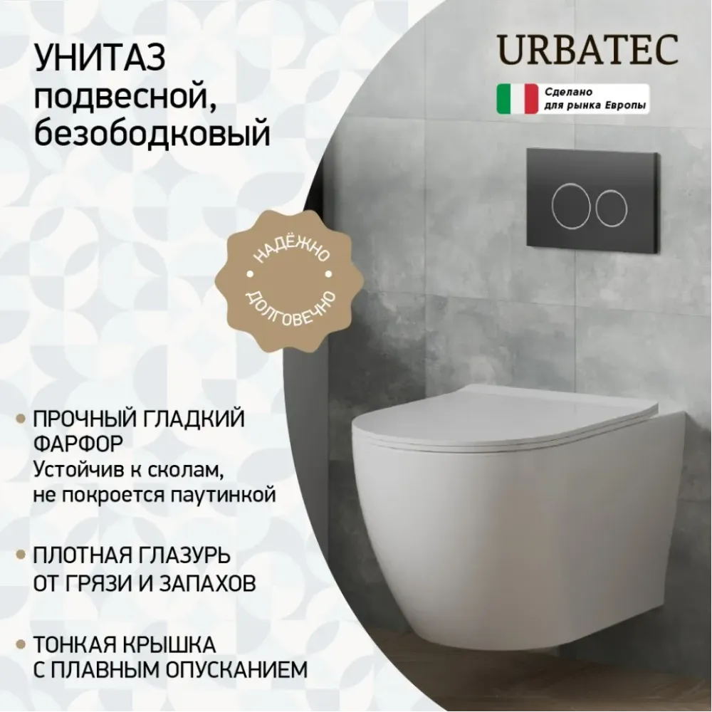 Подвесной унитаз URBATEC COX – сделан специально для России! Каждая мелочь продумана и выполнена с использованием современных технологий. Яркая геометрия COX позволяет сочетать унитаз с ведущими производителями сантехники, например, с продукцией бренда PAINI. Миниатюрные размеры этой модели позволяют органично дополнить даже небольшой санузел, а цена приятно удивит. Безободковая конструкция облегчит уход за унитазом.