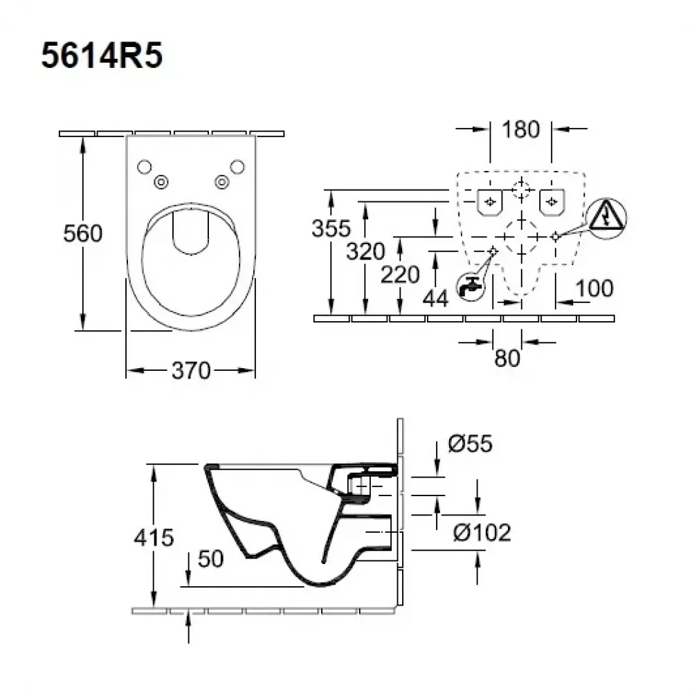 Villeroy & Boch Subway 2.0 5614R5R1 Унитаз подвесной, безободковый (альпийский белый). Унитаз с открытым смывным краем DirectFlush Только для крышки-биде ViClean-L арт. V02EL401. Размер: 560 х 370 мм. Материал: Санфарфор. Цвет: Белый Alpin (Альпийский белый) с CeramicPlus. Техническая информация: Подвесная модель/горизонтальный выпуск; Не подходит для установки со смывными кранами; Крепежный комплект «SupraFix 2.0» входит в комплект поставки; С системой экономии воды AQUAREDUCT®; Объем воды для смыва 3 / 4,5 литра; Leed: 4; Вес 25,6 кг.