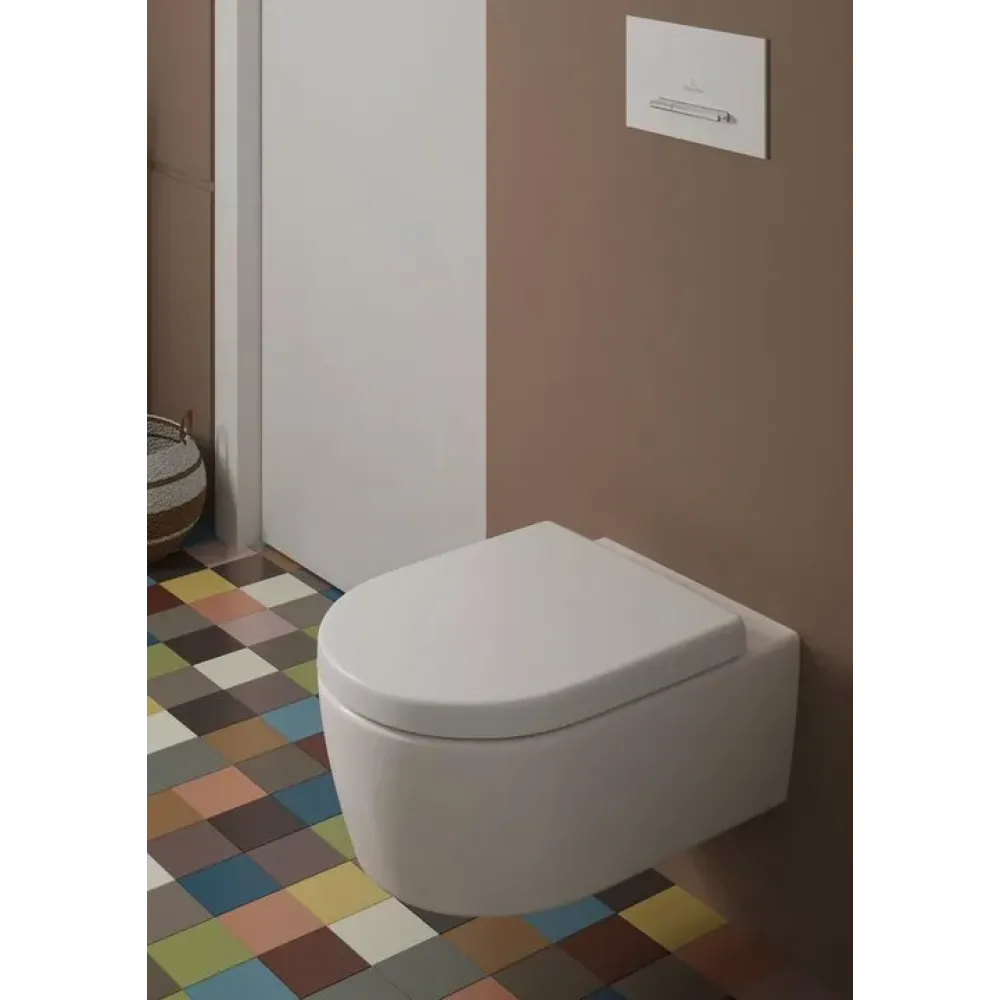Villeroy & Boch предлагает два варианта комплектов: подвесной унитаз с сиденьем или напольный унитаз со сливным бачком, сиденьем и крепежным материалом.