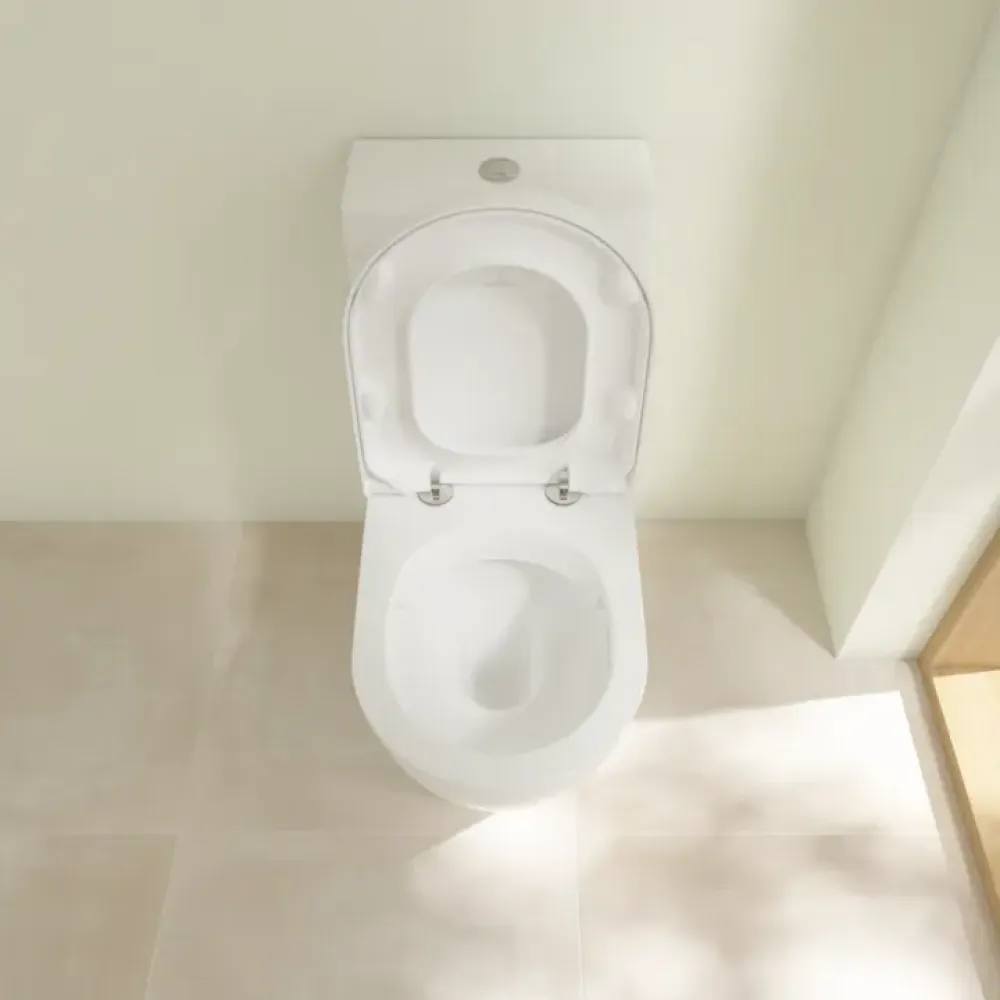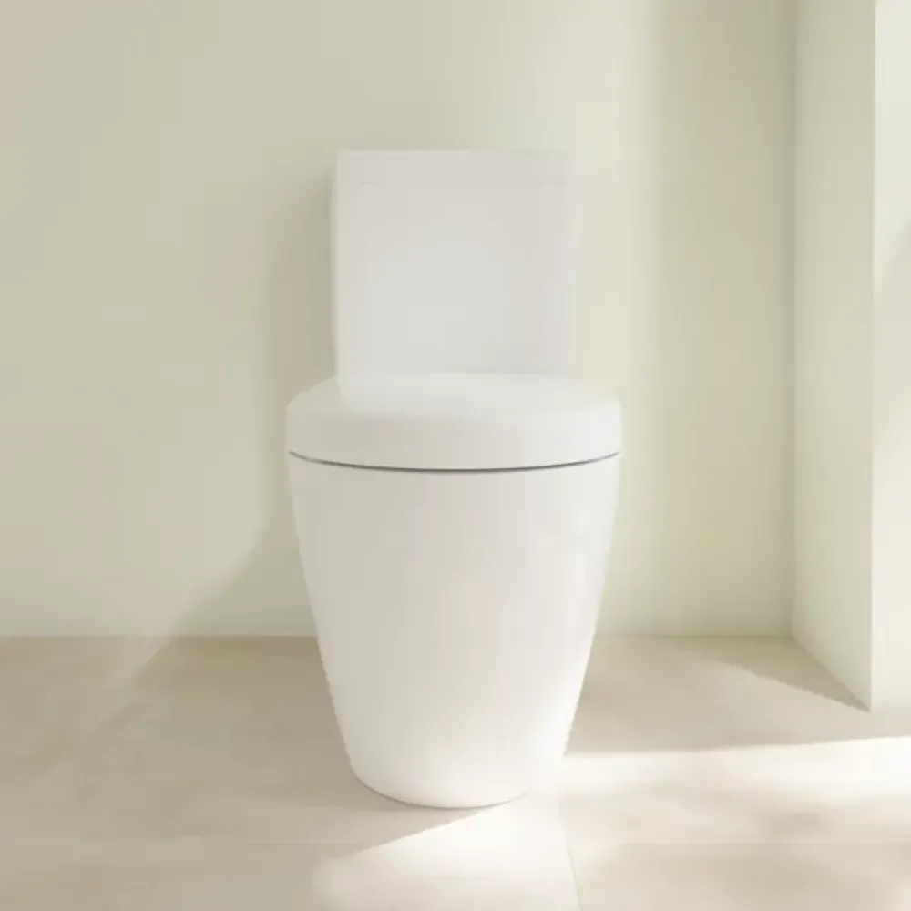 Комбинация для туалета включает в себя напольный унитаз и накладной сливной бачок. Они отлично подходят для разных видов и положений сточного отверстия. Villeroy & Boch предлагает различные соединительные отводы для установки, которые можно отрегулировать под любой размер. Эти модели преимущественно оснащены вертикальным смывом.