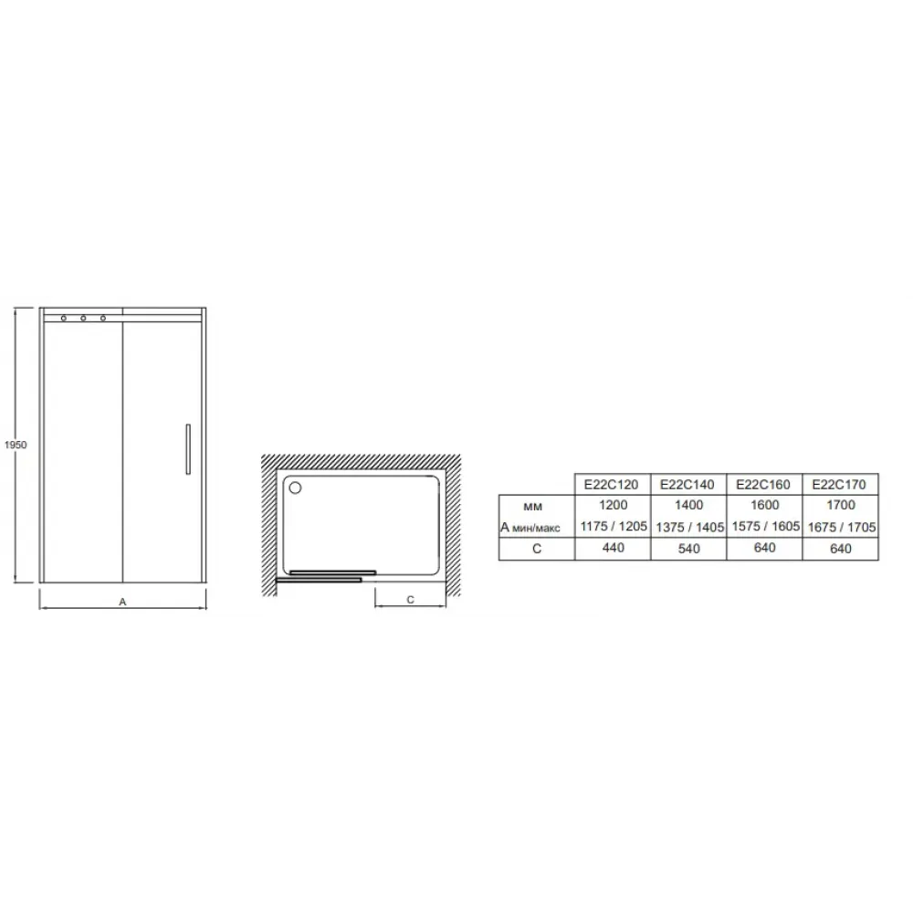 Технические характеристики Душевая дверь Contra 160х195 см, 8 мм E22C160-GA Jacob Delafon