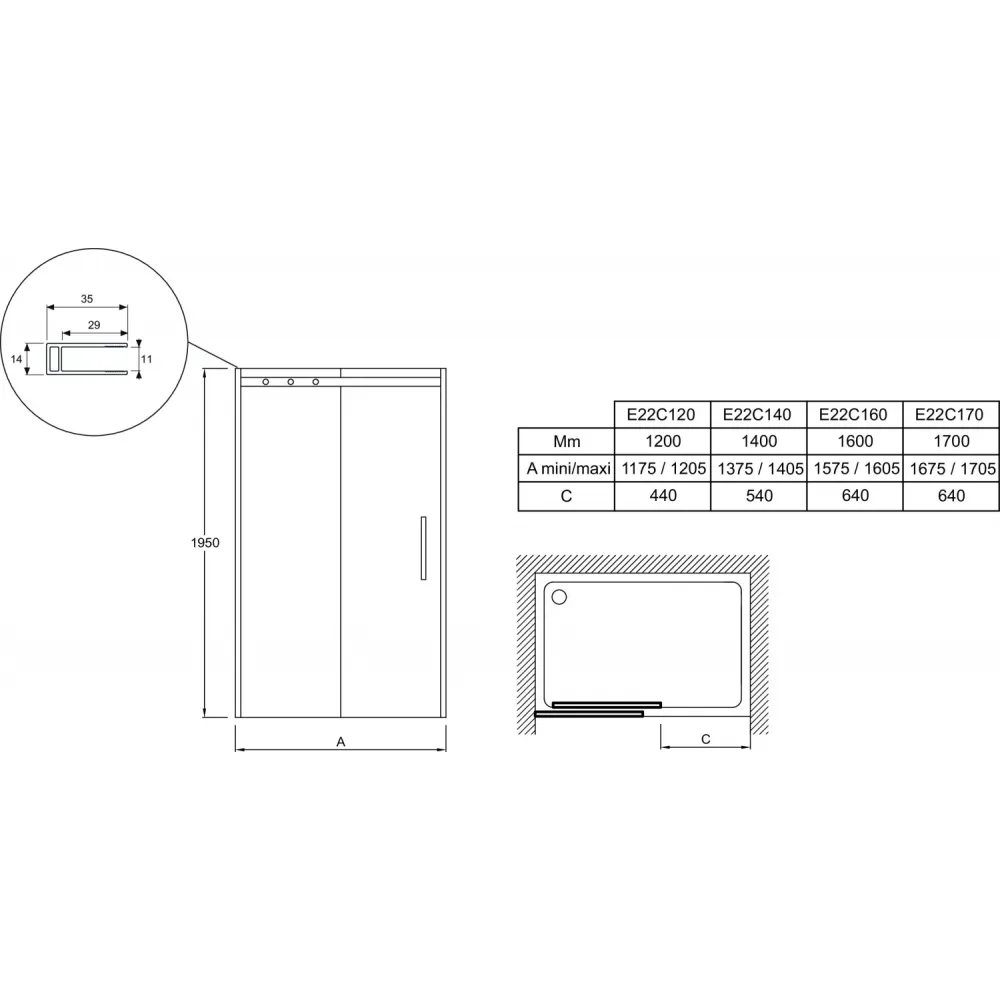 Регулировка по стене 20 мм. Высота 195 см.
