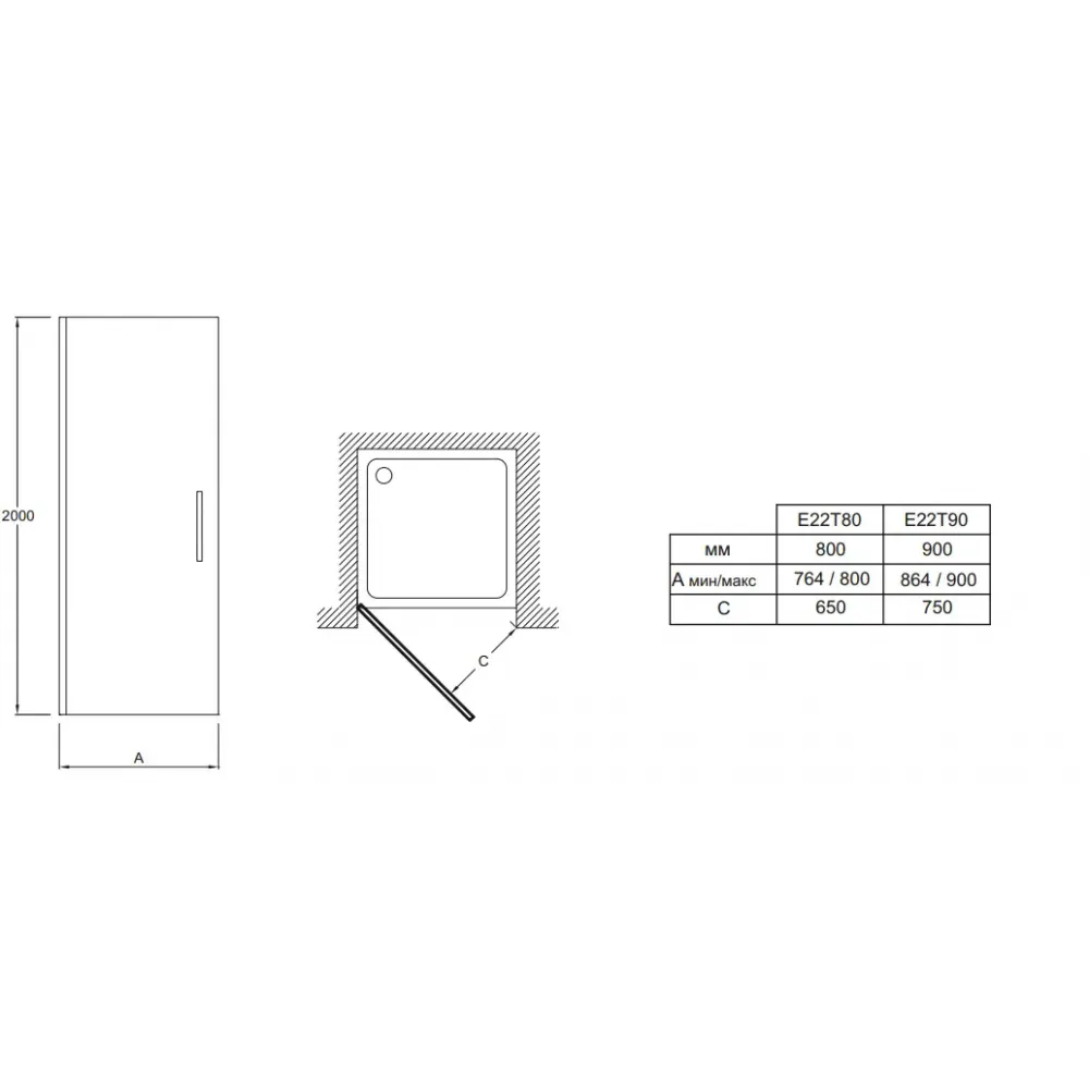 Технические характеристики Душевая дверь в нишу Contra 120х200 см, реверсивная, 6 мм E22T120-GA Jacob Delafon