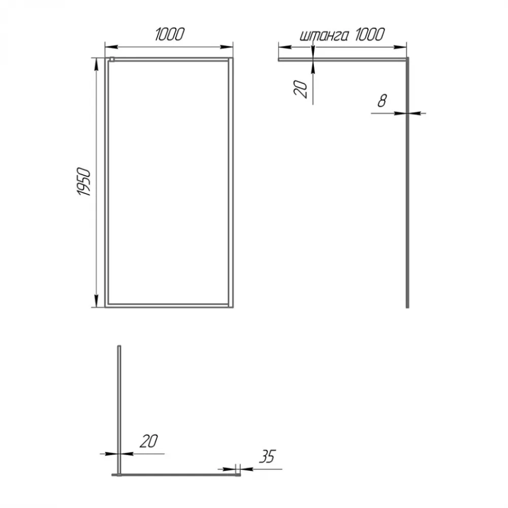 Профиль обеспечивает необходимую регулировку ± 20 мм при монтаже ширмы, а уплотнитель между стеклом и профилем – надежную защиту от вытекания воды.