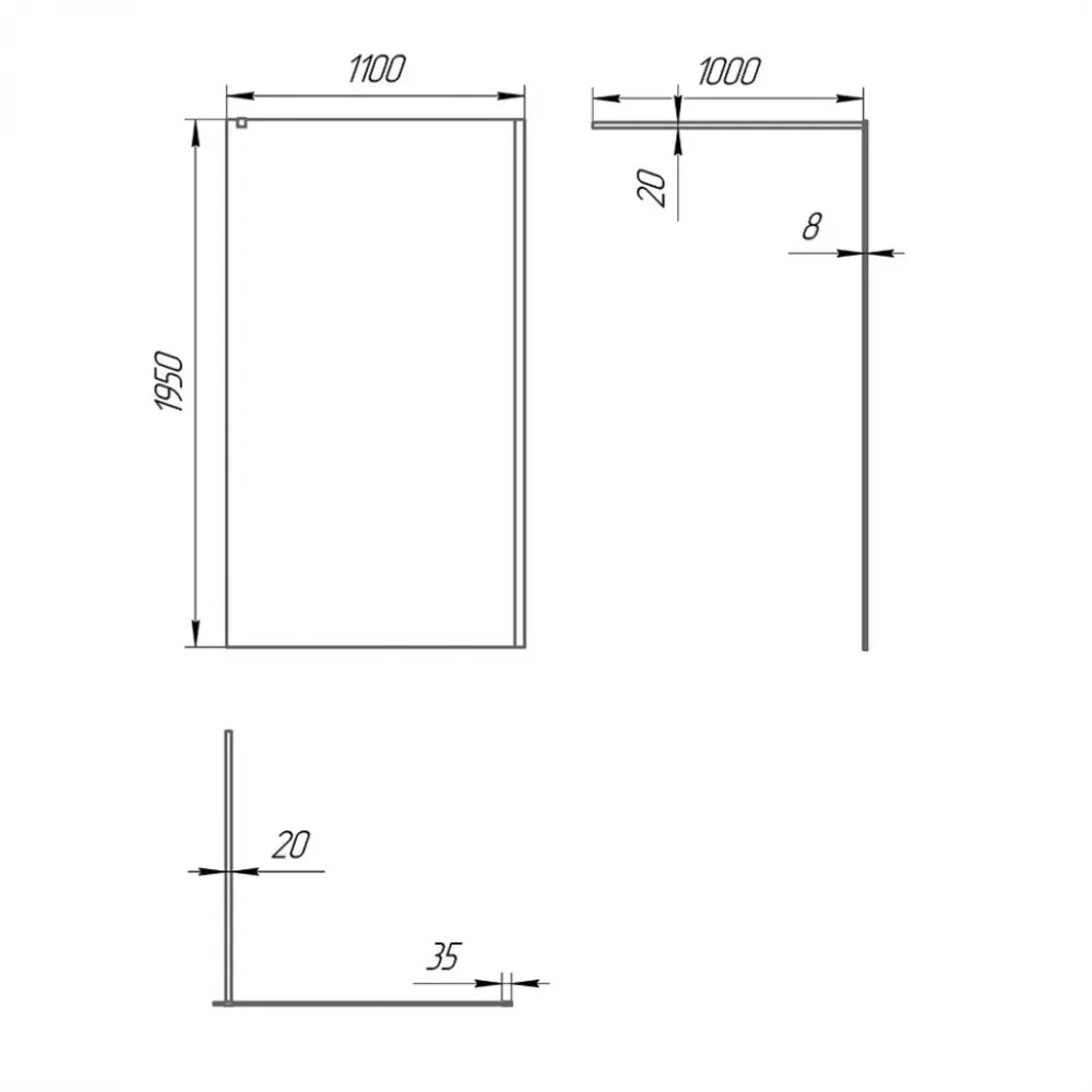 Профиль обеспечивает необходимую регулировку ± 20 мм при монтаже ширмы, а уплотнитель между стеклом и профилем – надежную защиту от вытекания воды.
