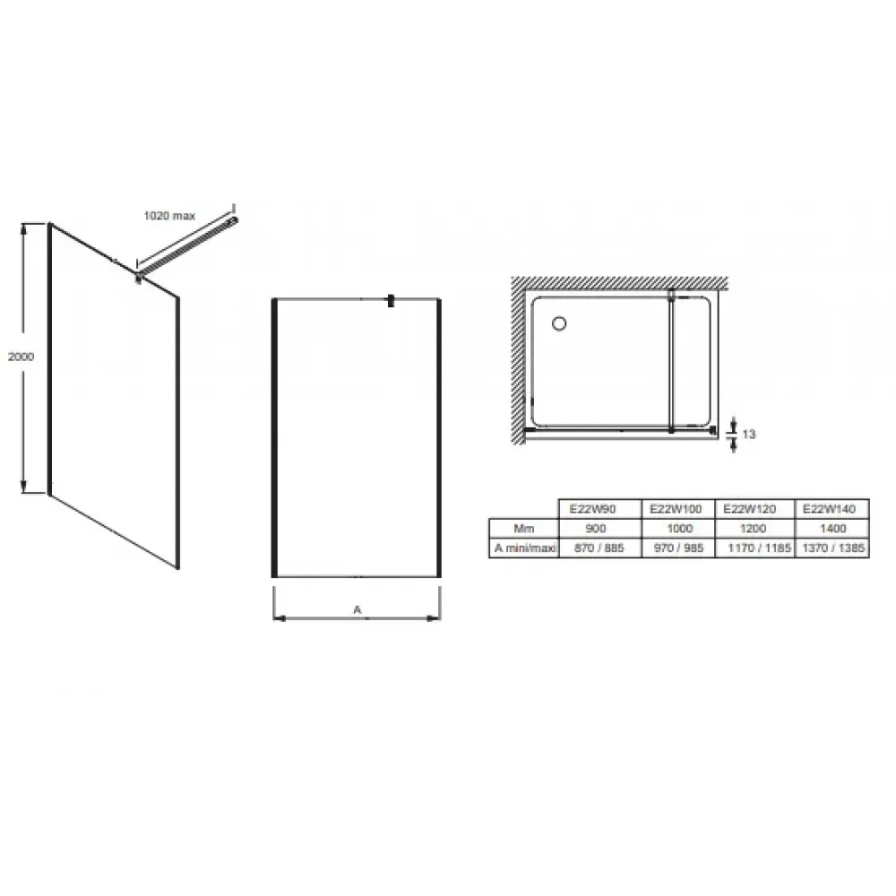 Технические характеристики Душевая перегородка Walk-In Contra 120х200 см, тонированное стекло, 8 мм, черный профиль E22W120-BLV Jacob Delafon