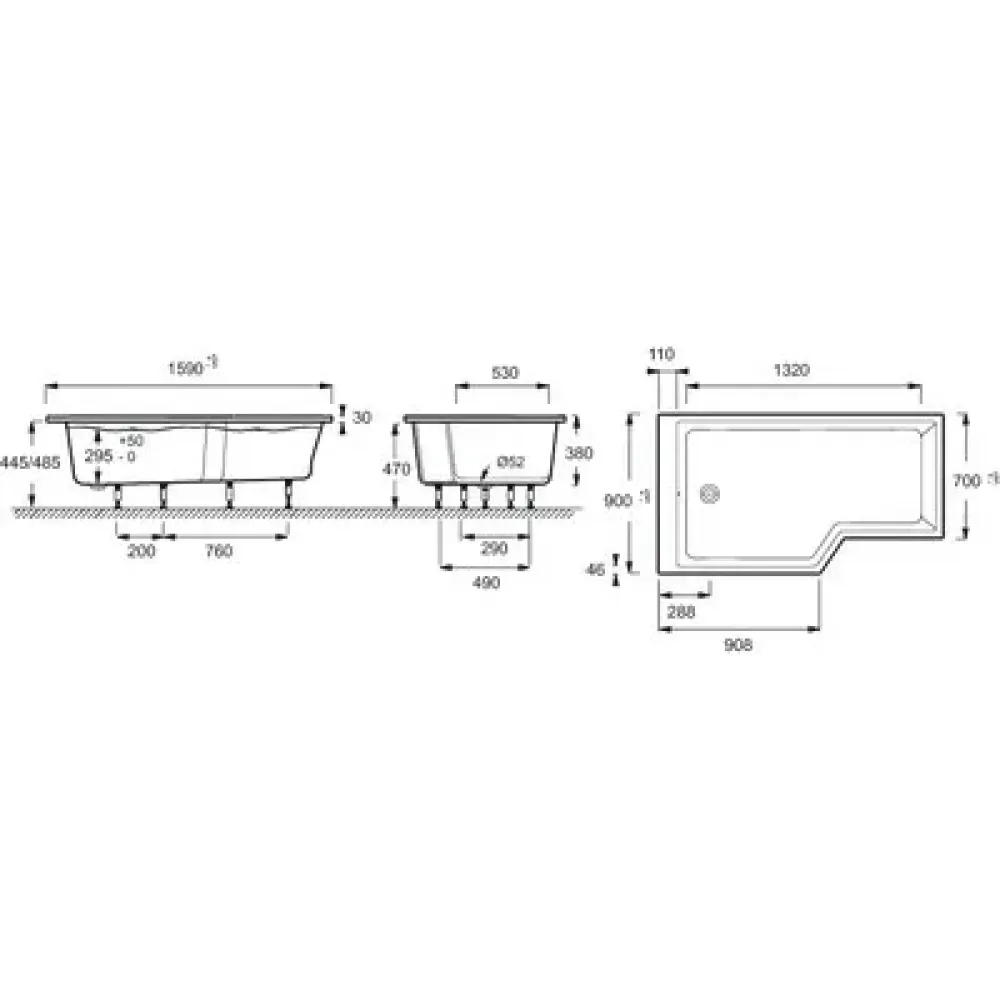Технические характеристики Акриловая ванна Bain-Douche Neo 160х90 см, левосторонняя E6D000L-00 Jacob Delafon