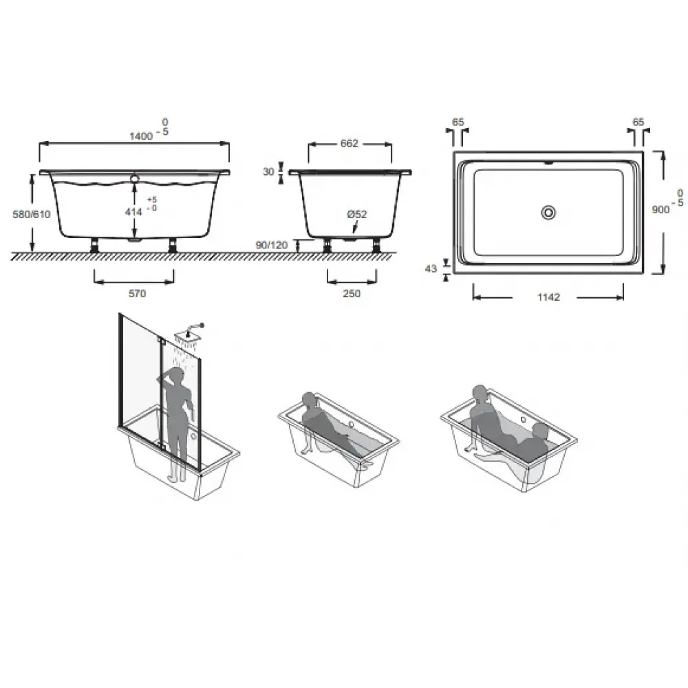 Размеры, см: 140 x 90 x 52