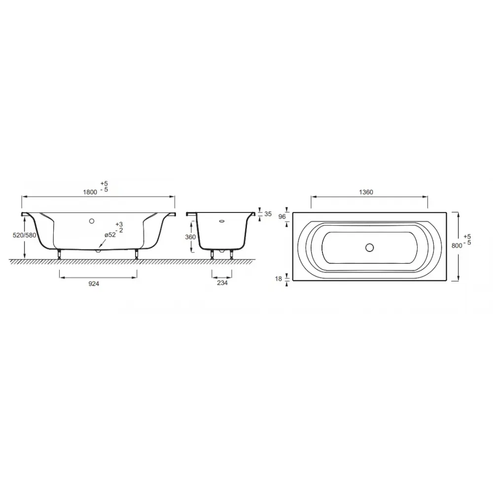 Технические характеристики Акриловая ванна Elise 180х80 см E60283-00 Jacob Delafon
