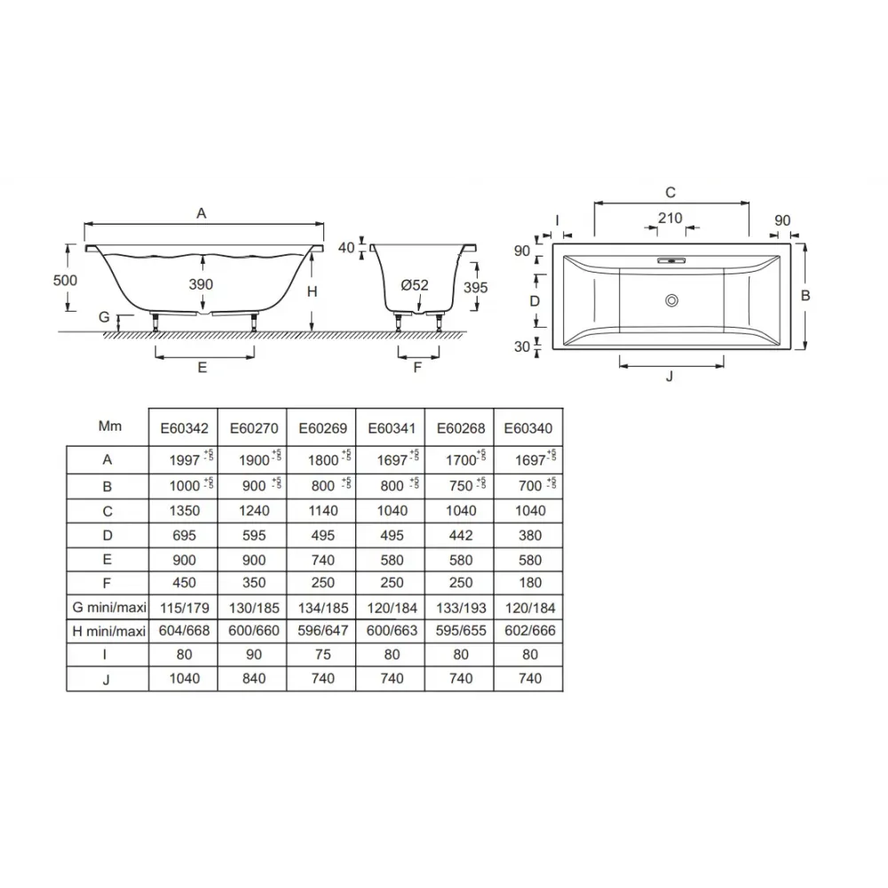 Технические характеристики Акриловая ванна Evok 190х90 см, с ножками E60270-00 Jacob Delafon