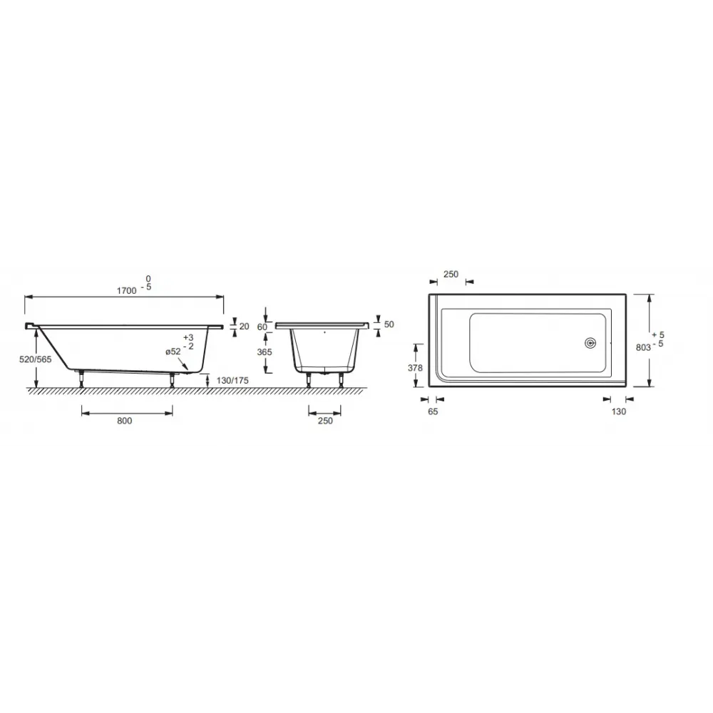 Технические характеристики Акриловая ванна Formilia 170х80 см, правосторонняя E6139R-00 Jacob Delafon