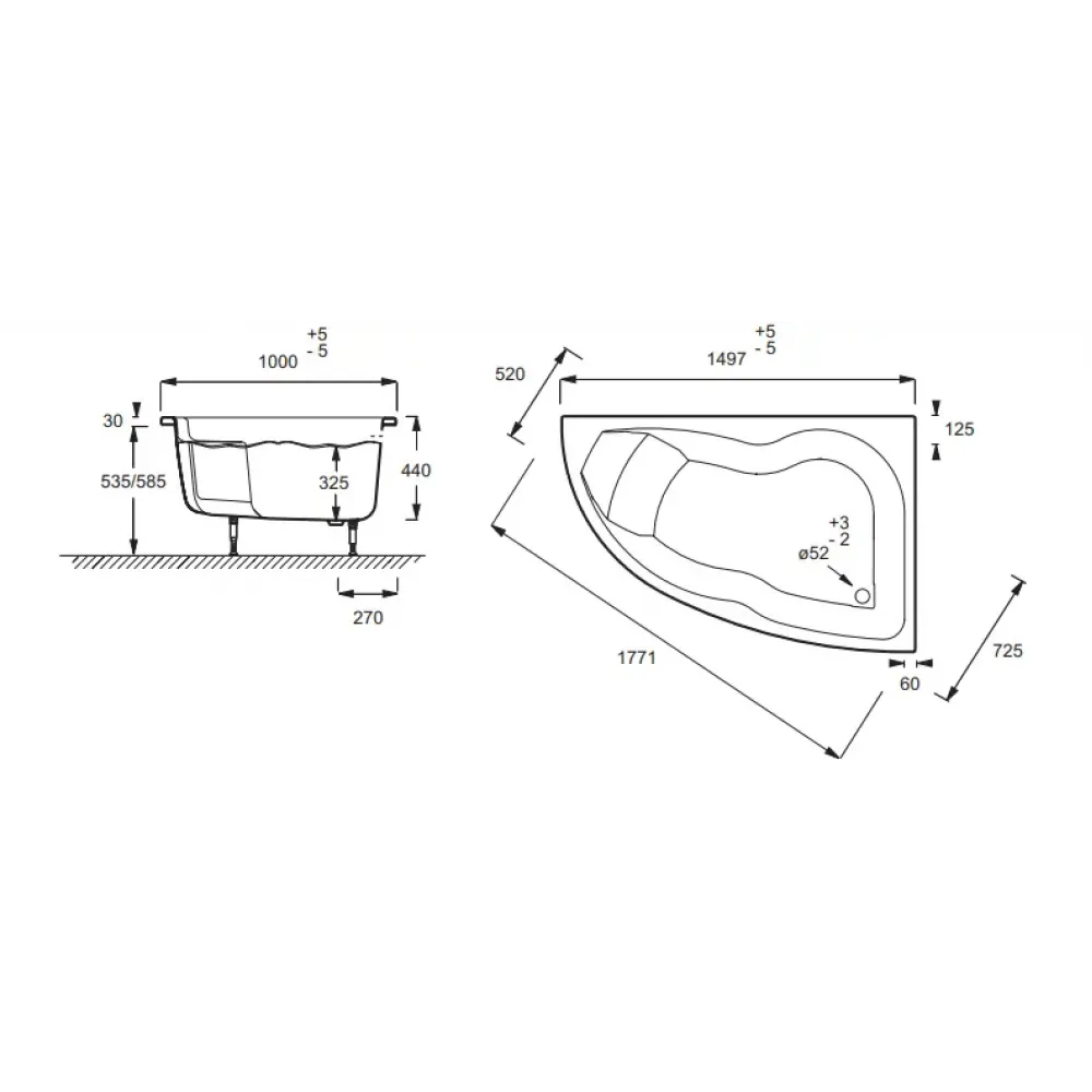Технические характеристики Акриловая ванна Micromega Duo 150х100 см, правосторонняя, с ножками, асимметричная E60218-00 Jacob Delafon
