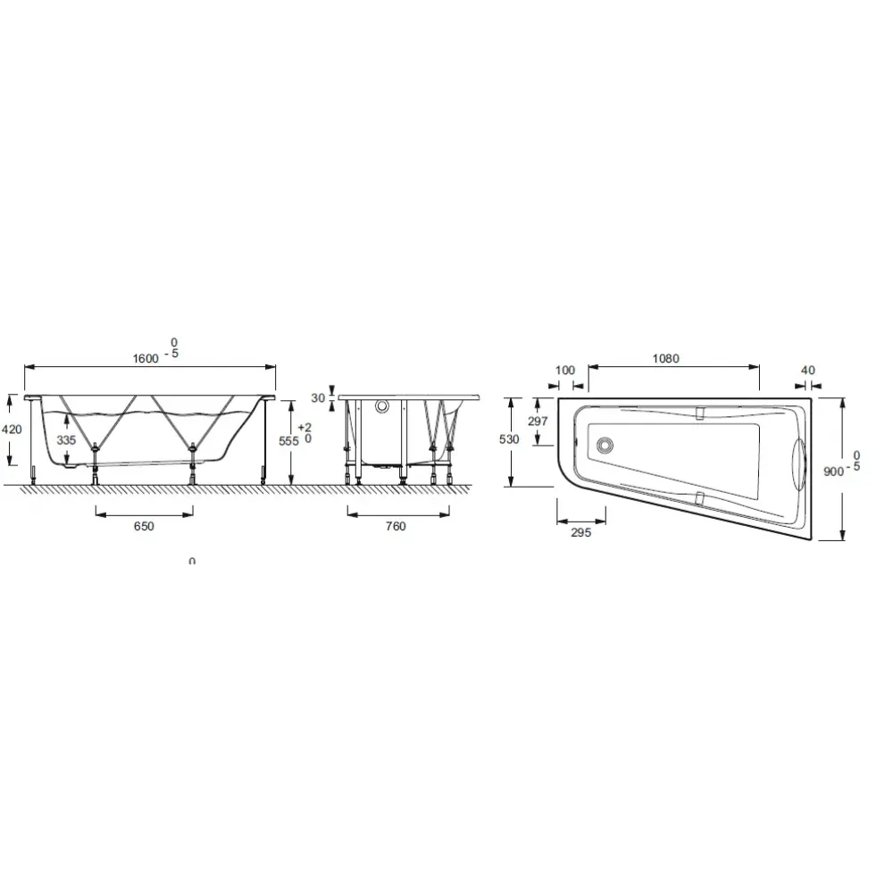Технические характеристики Акриловая ванна Odeon Up 160х90 см, левосторонняя, с каркасом, подголовником и ручками, асимметричная E60651-00 Jacob Delafon