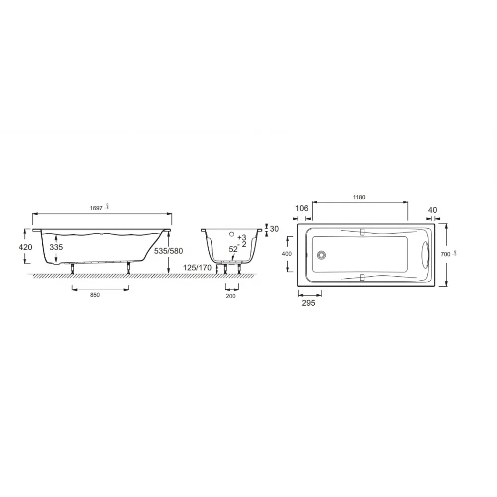Технические характеристики Акриловая ванна Odeon Up 170х70 см, производство Россия E6080RU-00 Jacob Delafon