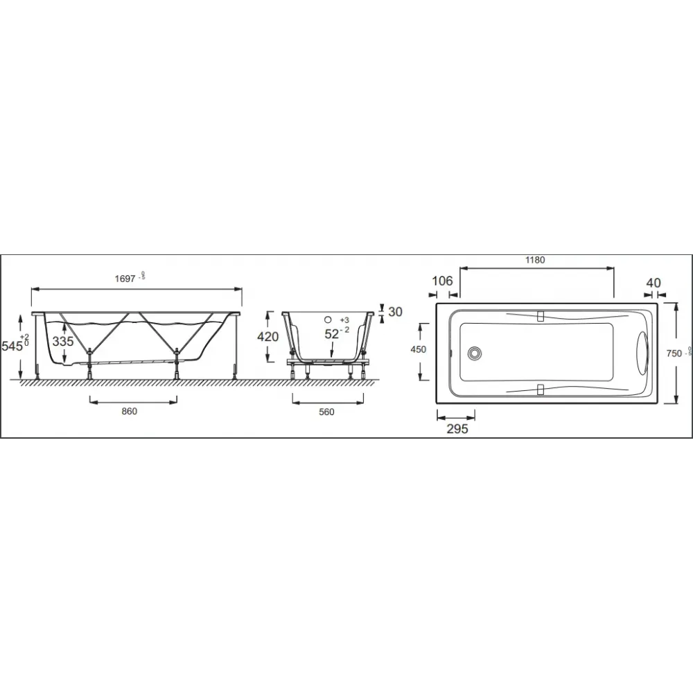 Технические характеристики Акриловая ванна Odeon Up 170х75 см, производство Россия. E60491RU-00 Jacob Delafon
