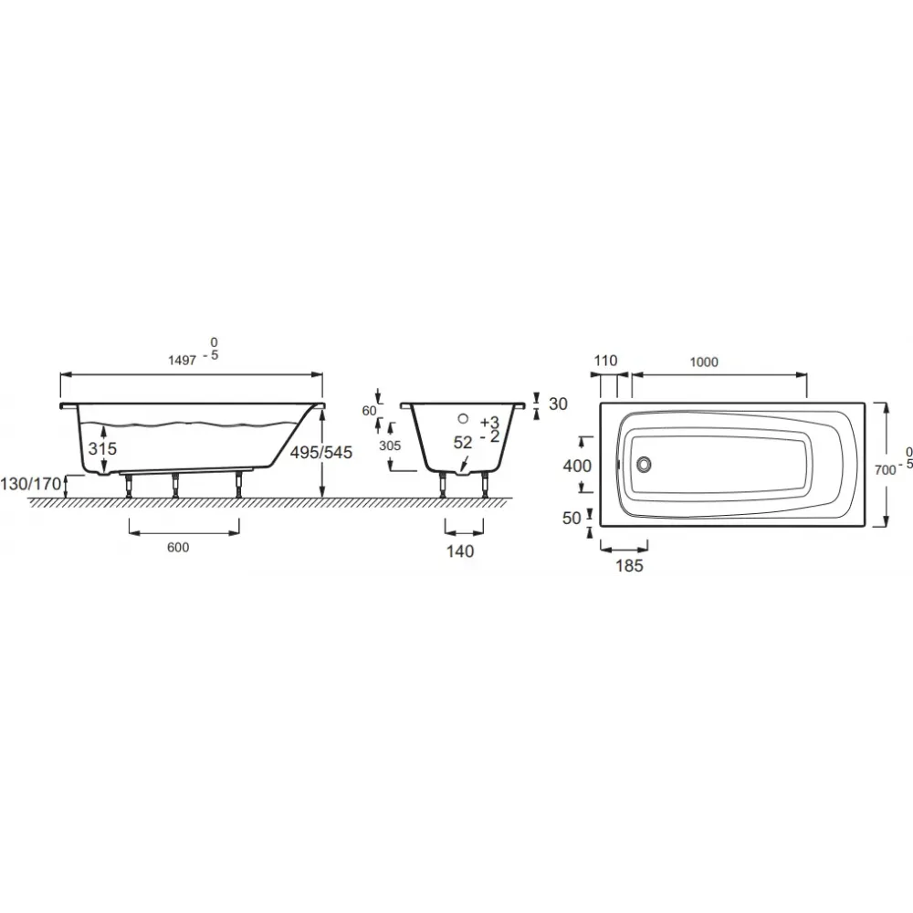 Технические характеристики Акриловая ванна Patio 150х70 см, белый лед, производство Россия E6810RU-01 Jacob Delafon