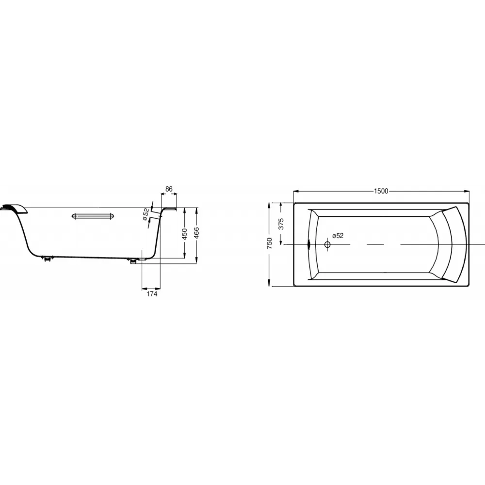 Технические характеристики Чугунная ванна Biove 150х75 см, антискользящее покр. E6D903-0 Jacob Delafon