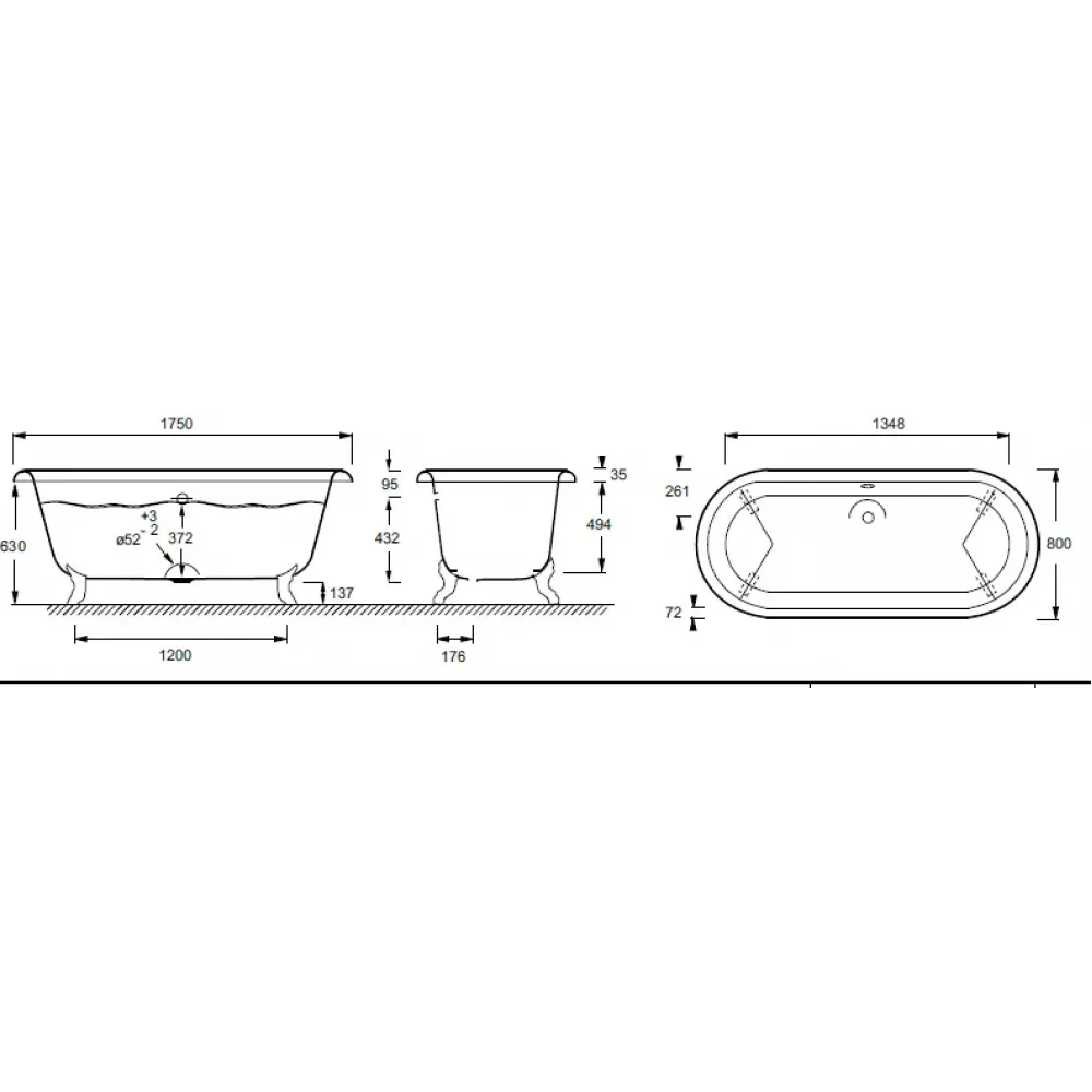 Технические характеристики Чугунная ванна Cleo 175х80 см, отдельностоящая, овальная, антискользящее покр. E2901N-00 Jacob Delafon