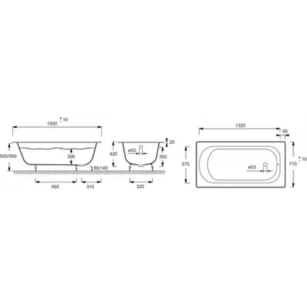 Технические характеристики Чугунная ванна Nathalie 150х70 см, без антискользящего E2962-00 Jacob Delafon