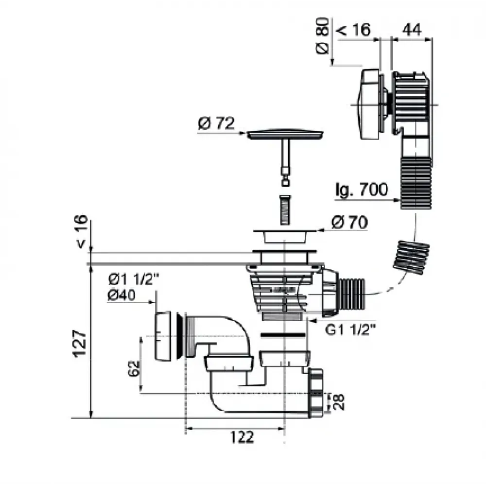 E6D159-CP 70см, слив-перелив для ванны, полуавтомат, Jacob Delafon