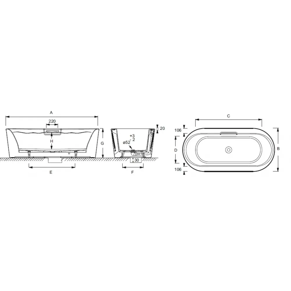 Технические характеристики Чугунная ванна Volute 160х75 см, отдельностоящая, овальная, антискользящее покр. 6D062-00 Jacob Delafon