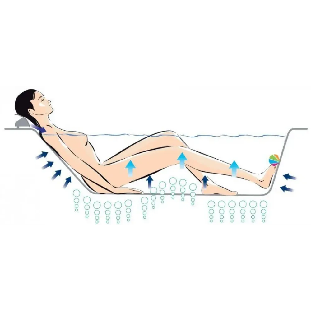 6 боковых поворотных форсунок, 4 спинные мини-форсунки, 2 мини-форсунки для массажа стоп, 4 боковые мини-форсунки: скрытая установка для сдержанного, эстетичного внешнего вида.