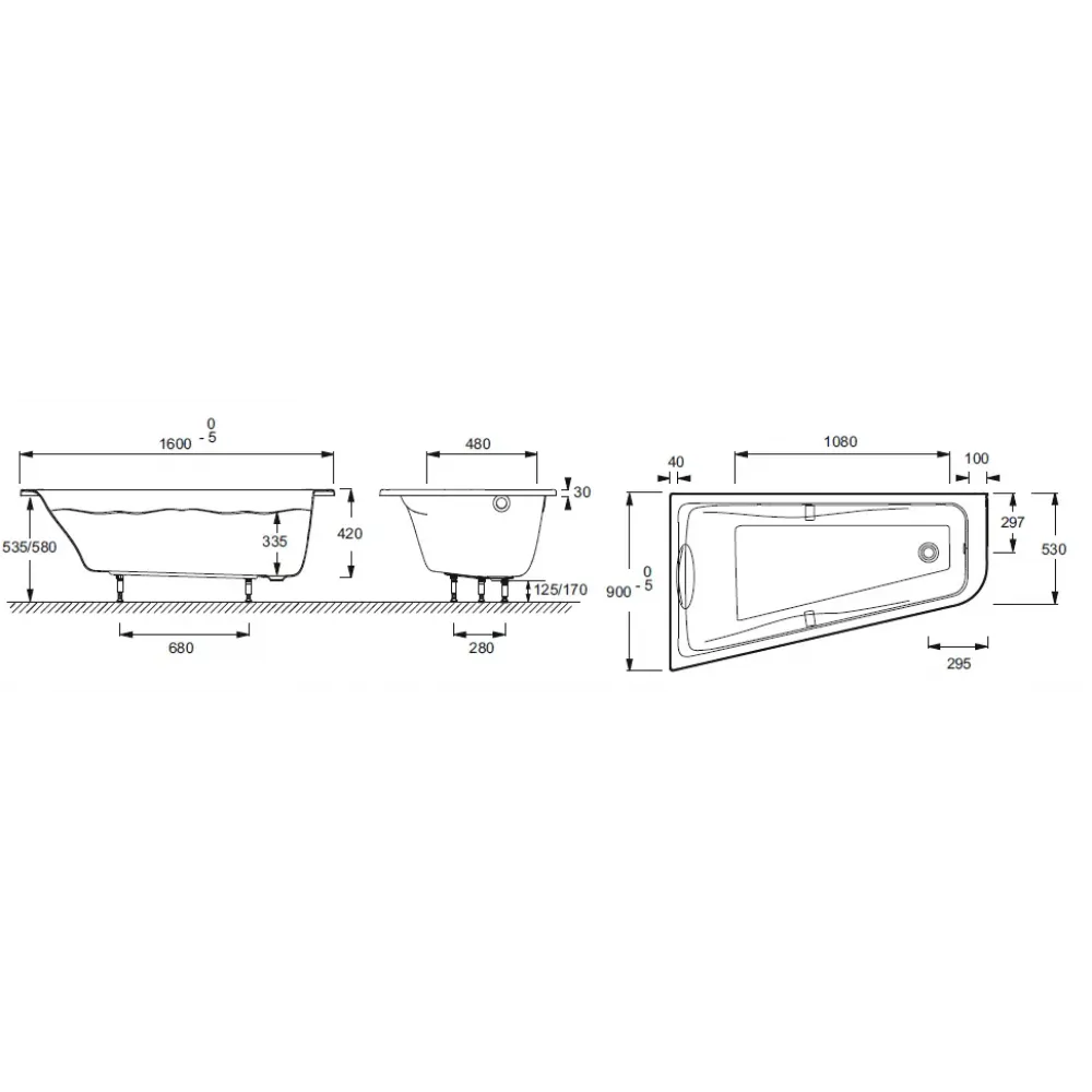 Технические характеристики Гидромассажная ванна Odeon Up 160х90 см, левая, с системой energy+, асимметричная E5EN2260RU-00 Jacob Delafon