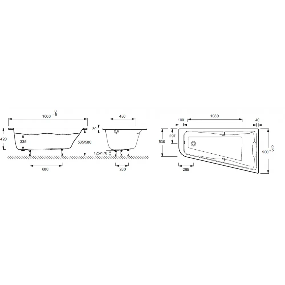 Технические характеристики Гидромассажная ванна Odeon Up 160х90 см, с системой plus E5BB2250-00 Jacob Delafon