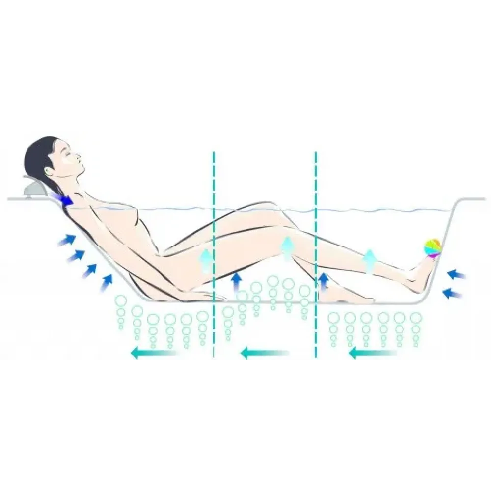 6 боковых поворотных форсунок, 4 спинные мини-форсунки, 2 мини-форсунки для массажа стоп: скрытая установка для сдержанного, эстетичного внешнего вида.