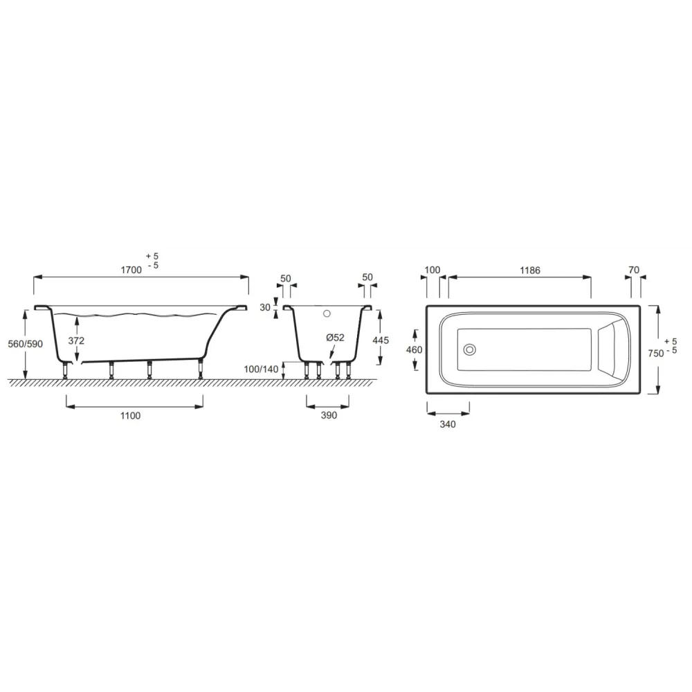 Устойчивость: ванна с 6-ю ножками для дополнительной устойчивости.
