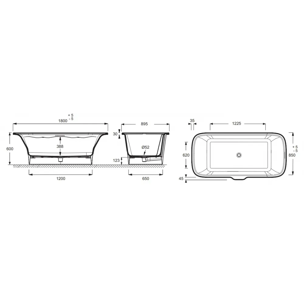 Технические характеристики Ванна из материала Flight Elite 180х85 см, отдельностоящая E6D034-00 Jacob Delafon