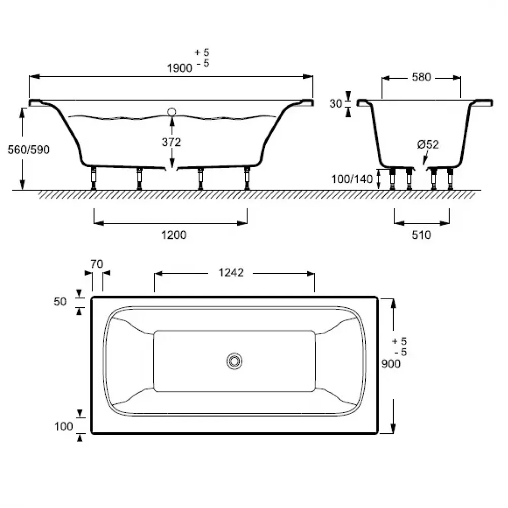 Технические характеристики Ванна из материала Flight Elite 190х90 см E6D033RU-00 Jacob Delafon