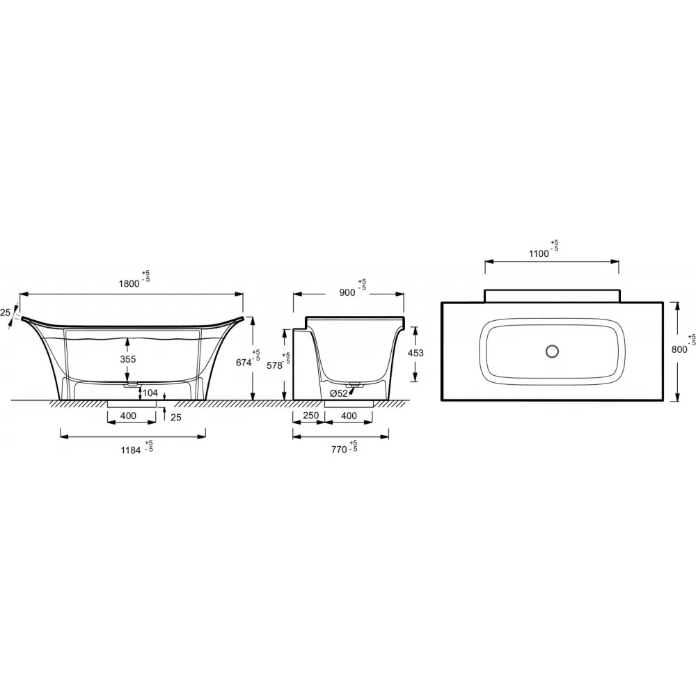 Технические характеристики Ванна из материала Neoroc Grands Boulevards 180х90 см, полувстраиваемая E6D158-00 Jacob Delafon